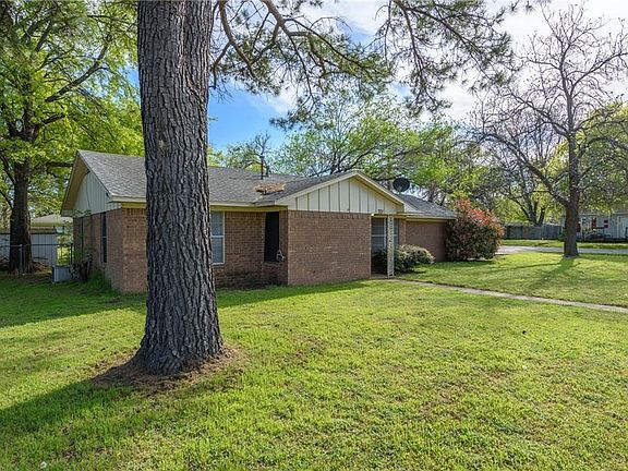 This 3 bedroom 1.5 bathroom home in the heart of Pilot Point is Located on a beautiful oversized corner lot. This 1555 Sq Ft Home Has a great floor-plan with large living room and galley Kitchen. Bedrooms that can fit a king size bed in every room. Half bath in hallway and Full bathroom in Master. Large utility room with tons of closets throughout the home. Home has multiple storage sheds in back yard and a side gate to fit an RV or boat. 30 minutes to Denton and 30 Minutes to Frisco makes this home convenient for travel. Large mature trees on a quiet Cul-De-Sac Photos coming soon.