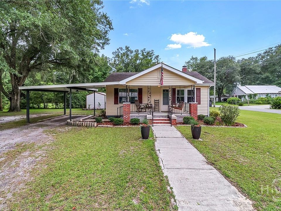 Discover the charm of small-town living at 701 E Moore St in Bloomingdale, GA! This delightful 2-bedroom, 1-bath bungalow sits on nearly an acre, offering privacy and plenty of outdoor space. Inside, you’ll find a spacious living area with large windows that fill the home with natural light, a cozy kitchen with plenty of cabinet storage, and comfortable bedrooms that make the most of the home’s classic layout. Step outside to enjoy a covered front porch, shaded backyard, and mature trees that frame the property beautifully. With room to add a garden, workshop, or even expand, this home offers endless potential. No HOA, no flood zone, and just minutes from Pooler, Gulfstream, I-16, the airport, and downtown Savannah—this Bloomingdale gem blends peaceful living with convenient access to everything you need.