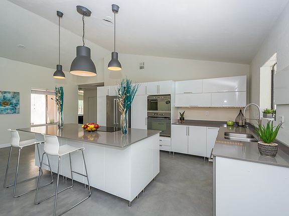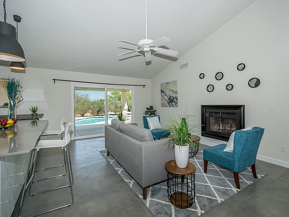 Very sharp, totally remodeled contemporary with fresh interior paint throughout is sure to impress! Clean lines, vaulted ceilings, lovely mountain views, fabulous floorplan and large open island kitchen/greatroom with new stainless steel appliances, gorgeous concrete floors, fireplace & designer touches thruout. Separate living room. Make the huge backyard your entertaining oasis with covered patio, concrete BBQ area, irrigated landscaping, refurbished pool and new vacuum system. New A/C units (2), windows, doors, hot water heater, toilets, faucets and fixtures for enhanced energy & water efficiency. Master Suite has cozy fireplace, enormous walk-in closet and unique rolling doors to master bath. Great foothills location just minutes to La Encantada and easy commute to downtown/UA.