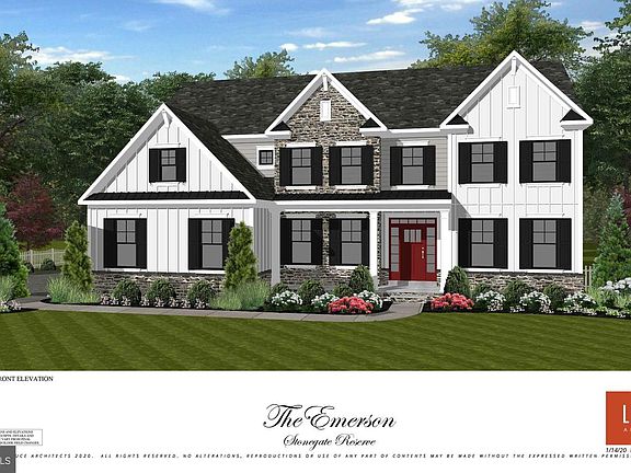 Welcome home to the newest community built by Marc Salamone Homes - Stonegate Reserve. A collection of 18 single family homes in Skippack Township. The Emerson model offers 4-5 Bedrooms, 3-4 Full Baths and 1-2 half baths. The gourmet modern kitchen features large center island, pantry closet, Quartz countertops, built in refrigerator and wall oven. Just off the kitchen is a roomy breakfast area that opens to the impressive family room complete with direct vent gas fireplace with remote a great low maintenance addition to cozy up any living space. The main floor also features formal dining and living rooms, a private study, a mudroom with access to the 2-car attached garage, convenient powder room, hardwood floors in the foyer, powder room, dramatic 9ft ceilings and so much more. Upstairs you'll find the impressive Master Suite featuring optional tray ceiling, Mater bath and dual walk in closets. Three additional large bedrooms complete this floor along with hall bath, a jack and jill bath and a convenient upper floor laundry room. You won't want to miss this opportunity to own your very own dream home! Options include 1st floor bedroom, morning room addition, 9ft basement walls, 3 car garage and more!