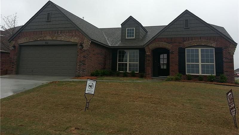 Beautiful new construction in Stone Wood Hills, featuring stained concrete floors throughout; open kitchen with island, granite counters, glass-tile back-splash and premium cabinets; split bedroom plan with oversized living and dining rooms; brick fireplace with gas log; large covered back patio; on large corner lot