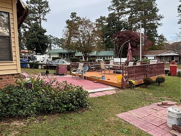 - Exterior features: Awning(s), Corner Lot, Deck