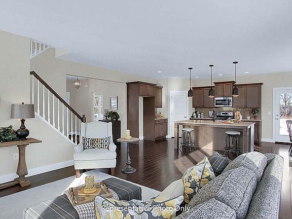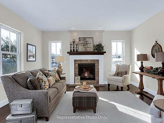 UNDER CONSTRUCTION: This beautiful home with a welcoming front porch includes a 2-car garage with a large mudroom entry. The first floor boasts 9’ ceilings and stylish vinyl plank flooring. To the front of the home is a convenient flex room that can be used as a study, living room, or other versatile space. The kitchen is well-appointed with quartz countertops and a tile backsplash, stainless-steel appliances, and a spacious pantry. A sunny dining area provides access to the rear patio. The comfortable great room is warmed by a gas fireplace with stone surround. The 2nd floor owner’s suite features an expansive closet and a private bathroom with a tile shower and double bowl vanity. Adjacent to the suite are 3 additional bedrooms, a full bathroom, spacious rec room, and a laundry room.