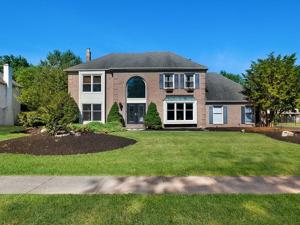 Beautiful new listing in Yardley Estates offering 4 Bedrooms, 2.5 baths with 3,398 sq. ft. of above ground living space which does not include the spacious finished basement with freshly painted walls & new carpet (2024). This brick front colonial has great curb appeal and sits on a .40 acre professionally landscaped lot with mature trees & a partially fenced yard. This home has a welcoming 2-story foyer featuring beautiful refinished hardwood floors (2024). The spacious family room (23 X 14) has vaulted ceilings, skylights, floor to ceiling brick wood burning fireplace, all creating a cozy atmosphere. The formal living room (14 X 19) & dining room (14 X 15) both are light & bright featuring the gleaming refinished hardwood floors, perfect for intimate gatherings. The white kitchen (13 X 11) has been updated with a brand-new LVP tile floor (2024) and a new dishwasher (2023). The (13 X 12) breakfast room provides a kitchen dining area with access to the serene/tranquil rear yard patio with awning & deck, superb for entertaining. In addition, the first floor offers a private office (15 X 14) with hardwood floors & built-in custom cabinetry, a convenient powder room and a laundry room with access to the garage. Upstairs the second-floor hosts 4 bedrooms and 2 full baths. The primary suite (20 X 14) offers a walk-in closet, a spacious sitting room (14 X 12), and a primary bathroom featuring a jetted soaking tub, tile flooring, his & her sinks with newer fixtures, vaulted ceilings and skylights. The finished basement with recessed lighting provides additional space for a game room, media area, etc. .......plus lots of extra storage. The rear yard is truly a private oasis for rest & relaxation, or perfect for outdoor gatherings. 3 car side entry garage with access to the mud room. New driveway 2024. New HVAC 2023. Conveniently located with quick access to NY, NJ, and Philadelphia. Award-winning Pennsbury school district. Just a short bike or car ride to local parks including: 5-mile woods, Core Creek Park, Tyler Park & Washington Crossing State Park. The HOA (approx. $60.00 annually) organizes community activities such as Family Movie Night, Halloween Hayrides & Pumpkin Picking.