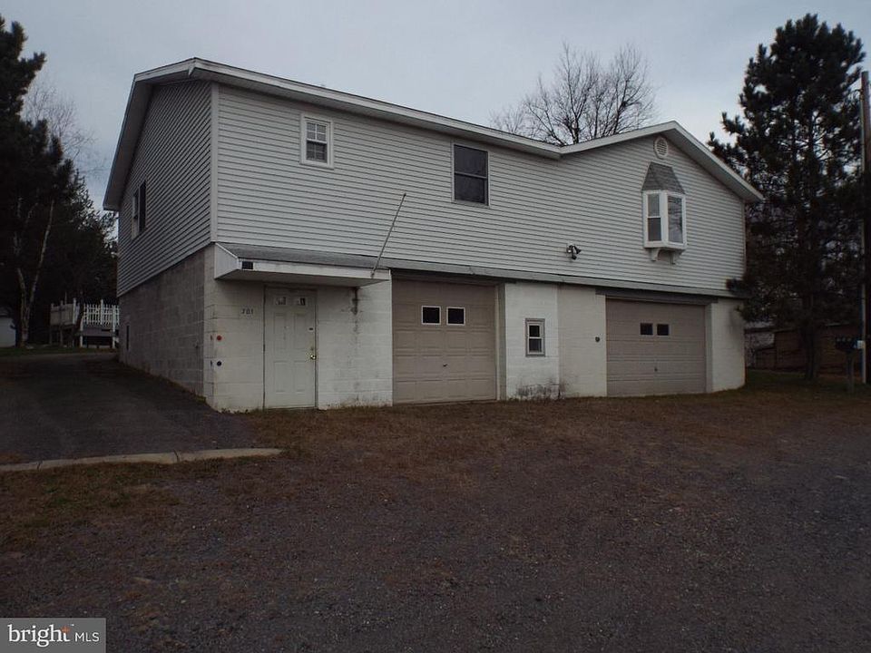 Raised rancher sitting on .4 of an acre above a large 2 bay 4 car garage. Level lot with above ground pool. Master bathroom and modern kitchen. Oil or coal heat. See pics.