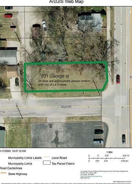 Corner parcel for sale on George and Hagar St. FEMA map shows in flood zone AE, see attached map, contour map provided for perspective. Talk with the city on flood zone programs. Lot lines are approximate please confirm with city.