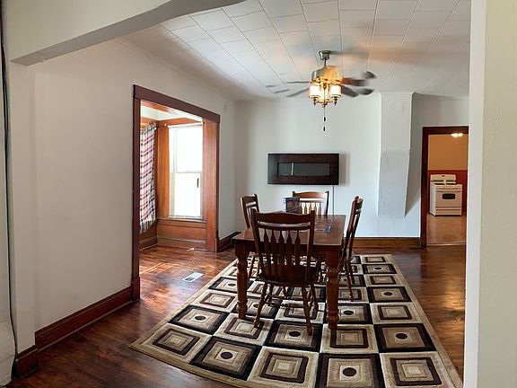 Lots of space inside and out in this four bedroom, two full bath home sitting on a large corner lot on Ottumwa's south side! Home features nice sized bedrooms with an ensuite bathroom to an upstairs bedroom and a large main floor bedroom with a large walk-in closet. Home features a full bath on both the main and upper floors. Home also features a main floor laundry room. New roof in 2016 and new central air in 2006. All appliances stay including the cool fireplace in the dining room! One car attached garage and a large back yard with two storage sheds make this the perfect home for the growing family! Come visit the home and see if you can add a piece to the dining room puzzle!