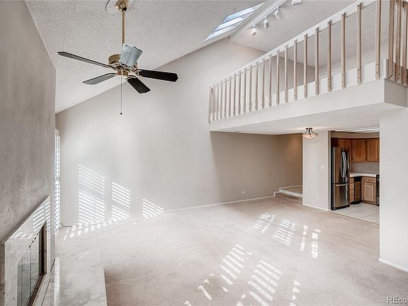 Welcome home to Meadow Creek! Great open floor plan with tons of natural light. Living area is complete with gas fireplace, ceiling fan, and overlooks creek with mature trees. Large windows with Plantation shutters make the home bright and warm. Kitchen has stainless steel appliances with a trash compactor and tile flooring. Two bedrooms on the main floor with a large loft upstairs that would be a great additional living area, third bedroom, or office. The secluded deck makes for great evenings overlooking a creek and green area with pond. Newer roof and newer hot water heater. Easy access to downtown Denver or the mountains, and close to light rail!