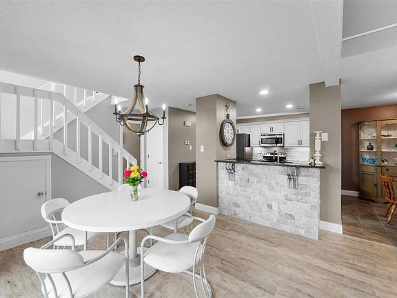 One of the finest waterfront homes in the Chapter One complex w/ 2 bedrooms, 2.5 baths & 1,312 sq. ft. of beautifully updated space. In addition to the peace & tranquility of looking over the water, you will love the many features of this end unit condo, including an insulated 2 car garage, 2 covered patios & a balcony off of the primary bedroom. The great room features soaring vaulted ceilings, fireplace w/ reclaimed mantle, beautiful updated floors & contemporary lighting. The kitchen has upgraded cabinets w/ crown molding, granite counter tops, contemporary tile backsplash, under cabinet lighting & breakfast bar. The second level features the primary bedroom suite w/ vaulted ceilings & updated master bathroom, a second bedroom, add. sleeping area & another full bath. Main floor laundry, dining area, plantation shutters & newer Pella windows complete this beautiful property! Condo community features beautiful lake w/ fountain, inground pool, clubhouse, walking trails & so much more! Location: Corner Location, End Unit, Ground Level, Suburban