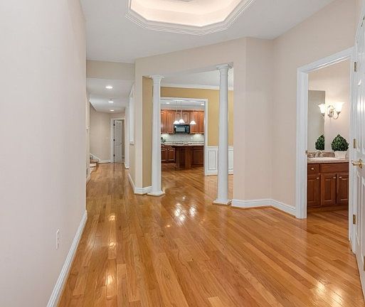 Enjoy maintenance free living in this beautiful patio home in Adam's Crossing with brand NEW roof, skylights, HVAC, carpeting and paint, (all November 2023). Water heater is only 2 yrs old. Spacious unit with one level living, first floor master suite and attached garage. Hardwood floors flow from Entry into Den, Dining Room and Kitchen. Den has built-in shelving and custom window treatments. Dining Rm has bay window, wainscoting and custom window treatment. Gourmet kitchen features granite counters, tile backsplash, large center island with seating and cherry cabinetry. Adjacent to the kitchen is a vaulted sunroom with heated floors which has a door to the patio with retractable awning. Living Rm with gas fireplace, built-ins and closet. Large master suite features 2 walk-in closets, ceiling fan and private bathroom with cherry double vanity, heated floors, ceramic shower, tub and water closet. Second floor has 2 bedrooms with ceiling fans, bathroom and large walk-in storage closet.