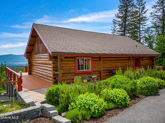 Beautifully updated and immaculately maintained log home with stunning views of Lake Pend Oreille and surrounding mountain ranges. Bright open living space with window lined walls, vaulted ceilings and impressive log beams. Enjoy outdoor living from your upper level wrap-around deck or relax next to the built-in water feature on your fully fenced and covered lower garden patio. Head over to the newly constructed art studio for another amazing view and some creative time! The immediate outdoor spaces have all been designed with attractive landscaping and stone retaining walls. Start your days watching the sun come up over Lake Pend Oreille, and the evenings seeing the wildlife meander through your private 3+/- acres. This is the perfect place to be, so close to downtown Sandpoint, Idaho, and Schweitzer Mt. Ski Resort, yet feels like you're a world away from the hustle!