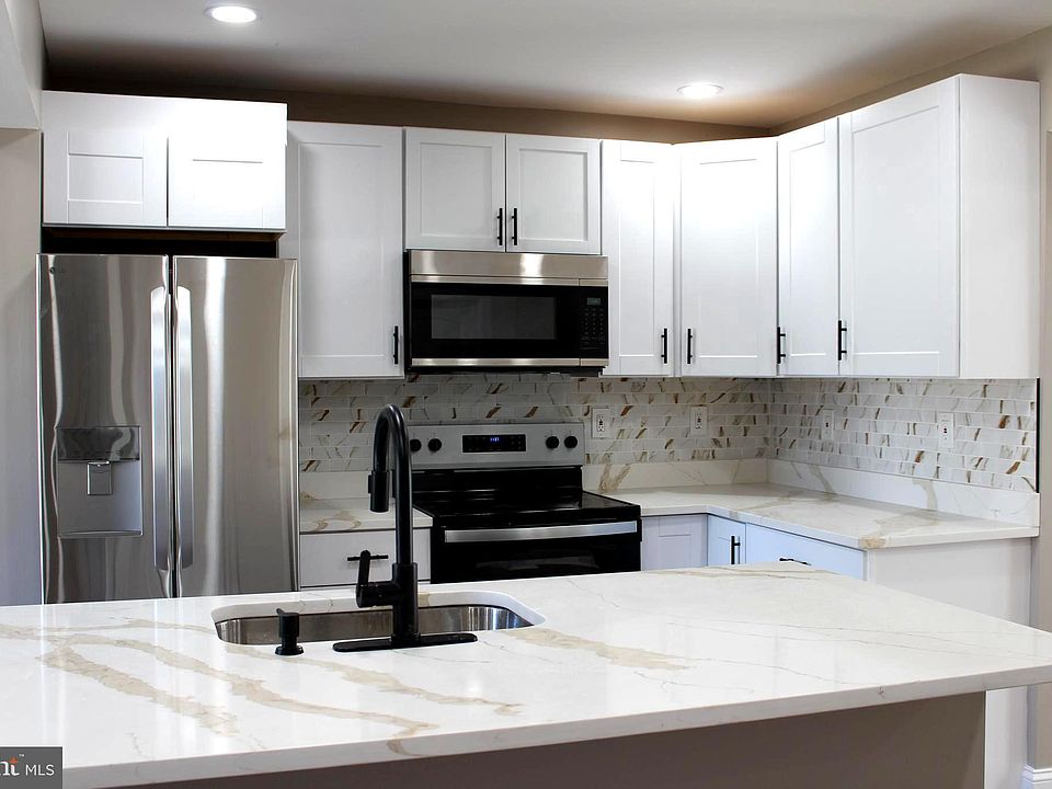 Rare Opportunity to Own End of Unit Townhome that is Newly Renovated - Move Right In -Convenient to Commuter Routes - Freshly painted from top to bottom. All NEW light fixtures, switches and outlets. NEW doors and all NEW matching hardware. All NEW carpet for upper level and NEW luxury vinyl plank for lower level. All of this gives this Open Floor Plan home that Country Chic vibe all you have to do is decorate! All bathrooms are fully renovated with new fixtures, hardware and cabinet/vanities each with their own distinctive tiles and layout. Kitchen is cooks dream with all NEW stainless steel appliance and coordinated backsplash tile to NEW granite countertops, complimented with NEW white shaker cabinets and NEW hardware. Kitchen has separate pantry Off the living room area is third bathroom, no running upstairs. Deck is freshly stained with privacy wall and enters the Living Room area thru NEW slider with internal blinds-cleaning is easy! Large back yard is fully fenced for your furry friends. NEW Flowerbeds are in place waiting for your touches! This home comes with an unfinished basement that you can finish to your own taste to create home equity. Even the HVAC and Water Heater 2022 are NEW Roof recently replaced.
