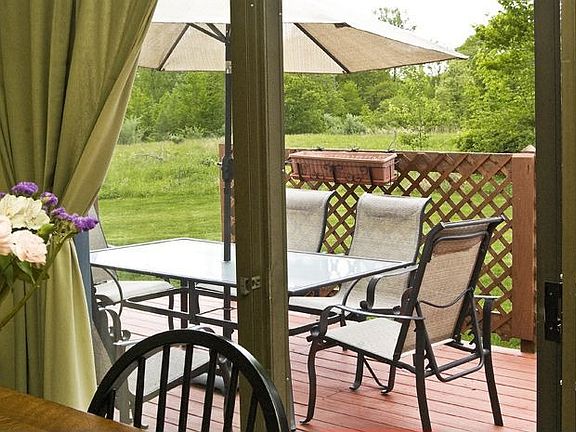 End Unit with best location in the development! This home has 2 bedrooms, and 2 full baths, Living Room with laminate floors, open eat-in kitchen, heated sunroom and large deck with view of wide open field.