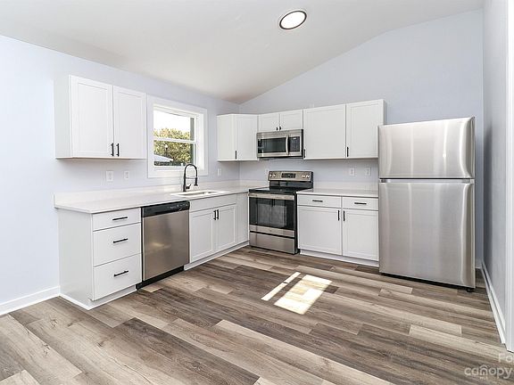 Fully Renovated 4-Bedroom Home in Prime Location. Nestled in Pineville's heart, this exquisite home seamlessly blends style, comfort, and modern design. Quick access to I-485 and I-77, you're just moments away from a plethora of shops, eateries, and entertainment venues. Relish in the ambiance of a home that feels brand new. Kitchen & Living: Vaulted ceiling, high-quality stainless appliances, and a spacious living area perfect for relaxation or gatherings. Three main rooms and an adaptable space suitable for a nursery, office, or bunk bed. Revamped storage, a porch for leisure, and a nearby park with a pond. Take this opportunity to own a home that is situated in a vibrant community and experience modern family living in a great community. Book your viewing appointment today!