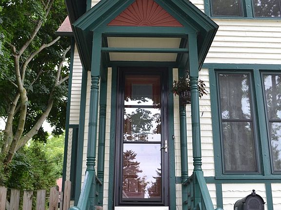 Enjoy this 1885 Victorian home with fenced in yard and many updates including hardwood floors in the living and dining room (2015), windows & doors (2012), new gutters (2015), updated 1/2 bath on first floor (2016) which also has radiant floor heating. Gas fireplace and free standing gas stove in kitchen will keep things cozy during the winter months. Stained glass window in office and chandelier in dining room remind you of times gone by.