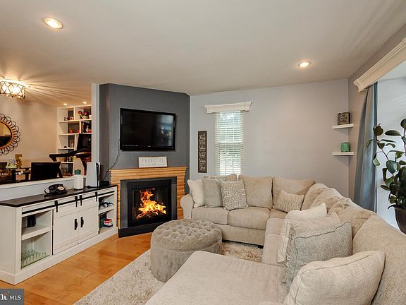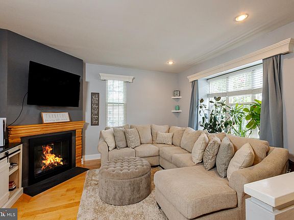 Discover this charming Chatham Model end-unit townhome located in the desirable Kings Croft community. The first floor features an entry foyer with a guest closet, a sunken living room with a gas log fireplace, a formal dining room with built-in bookcases, a kitchen with an island and breakfast area, and a powder room. The second floor offers a master bedroom suite with an upgraded full bath and walk-in closet, along with two additional spacious bedrooms, laundry hookups, and a full bath. This home also includes a newly finished basement and comes with two assigned parking spaces. Enjoy beautiful hardwood floors throughout, replacement windows and a sliding glass door, upgraded bathrooms, a newer air conditioner, and professional landscaping. Recent upgrades include a basement renovation in 2021, a renovated second bedroom closet and added recessed lighting in 2022, recessed lighting in the kitchen and third bedroom, replaced outlets, covers, and switches, and new refrigerator, microwave, and dishwasher in 2023. In 2024, the master vanity and bathroom were renovated with heated floors in the bathroom and shower, an Alexa Bluetooth fan/music player was installed, and the 50-gallon water heater was replaced with a tankless water heater.