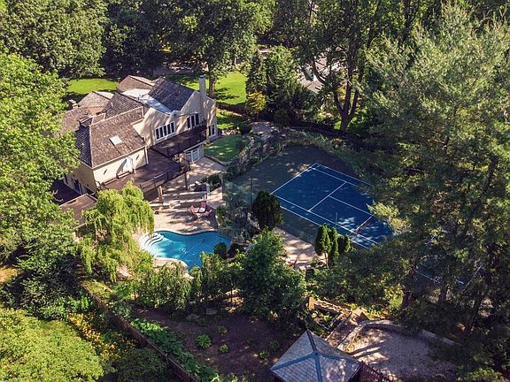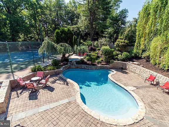 Rarely does a home like this become available that has so many extraordinary amenities and features that it sets itself apart from anything traditional and ordinary. This impressive property possesses eclectic design details throughout and is reserved for a buyer seeking something exceptional. It is situated upon park-like grounds offering an inground pool with waterfall feature and spa, outdoor bar, changing room, tennis court, putting green, chipper net, sand trap, and extensive professional landscaping and hardscape. The brand new double door entryway with transom window accents leads you to an elongated foyer with marble floor leading back to the light-filled living space including a great room with fireplace and floor-to-ceiling windows, powder room with pocket door, library with hardwood floors and custom built-ins, and a first-floor guest bedroom or Au Pair quarters with full-bath. The prodigious gourmet kitchen will receive your admiration. It possesses an abundance of prep and storage space with custom Cherry cabinetry, granite counters, 2-tier center island with secondary sink, bar seating, Wolf 8-burner cook top stove, double ovens, subzero refrigerator, wine refrigerator, bar area, breakfast room with bay window, and an impressive walk-in pantry. It is adjacent to the fireside Family Room that features a sliding glass door to the yard, granite tile floor, rounded metal wall fireplace, and a fashionable double doorway leading back to the foyer. The formal dining room with chandelier and stained-glass window accents completes this level and will accommodate the largest of gatherings. The Master Suite is worthy of its name with his-and-hers walk-in closets, sitting room with gas fireplace, double stage crown molding, and private access to the generously sized upper balcony. Off the bedroom you will find an exceptional Master Bath with marble floors, sunken Jacuzzi tub with granite surround, oversized stall shower with rain head and bench seat, double dual vanities and two water closets both with pedestal sinks. Three additional large bedroom suites all with private baths and a convenient laundry room can also be found on this level. The walkout Lower Level is finished into an entertainment paradise offering a full-size granite topped wet bar with hammered copper sink, full bath, recreation area, GYM and a fascinating antique doorway opening to a tremendous wine cellar with bar. The grounds with prolific natural views and various entertainment luxuries along with all the interior has to offer will truly bring you years of enjoyment.