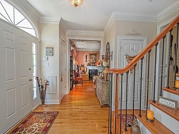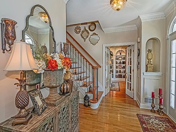 Spectacular Barrington Custom Built home on a private treelined lot in desirable Treesdale neighborhood. Welcoming, expansive front porch. Exquisite craftmanship and custom features are found throughout this amazing home. Appealing open floorplan with beautiful hardwood floors, extensive crown moldings, chair rails, custom built-ins, artistic woodwork, dramatic vaulted ceilings, skylights & floor to ceiling large windows. The inviting foyer is open to the LR & den with glass doors leading to the impressive front porch. Elegant formal dining room with trey ceiling. Gorgeous kitchen with extensive snack bar island, & SS appliances open to the spacious breakfast room flanked by windows and glass door leading to the private rear patio. The fabulous Fr with gas fireplace is open to the kit & breakfast room. Impressive primary suite with spa-like bath. 2nd floor laundry, Finished LL game room with bath & additional exercise room. Oversized 3 car garage & level driveway. Treesdale amenities!
