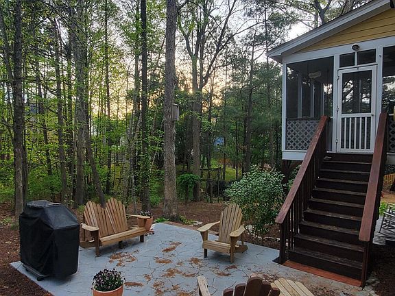 Immaculate custom built house sits on a large corner wooded lot in an established neighborhood in a heart of Holly Springs. Walking distance to downtown , library and restaurants, a grocery store. Upon entrance you are warmly greeted by hard wood floors, fresh paint and bright and open floorplan seamlessly connecting the dining room to the kitchen to the family room. Relax on the back screen in porch which overlooks landscaped yard. Meticulous attention to details presented in bright airy kitchen with an island, new quartz countertops, customized back splash, 42 inch cabinets and brand name appliances . Eat in breakfast area. A comfortable family room is located off the kitchen. Upstairs you will find an overside MBD with tray ceiling and walk in closet. MBA doble vanity , a tab and oversized walk in shower , it has towel warmer and bidet t. attachment. Also upstairs there are secondary bedrooms,additional BA and a bonus room/fouth bedroom/play roomthat provide additional flexibility. Walk up to finish attic which can be used as an additional bedroom/media room with a lot of storage space. New roof (2019) .Wrap around porch, A beautiful patio provides plentiful space for gardening and entertaining A lot of updates throughout. This home has been well cared for by its original owners . Sold ''as is'' Refr &washer do not convey but negotiable.Porch swing bed does not convey