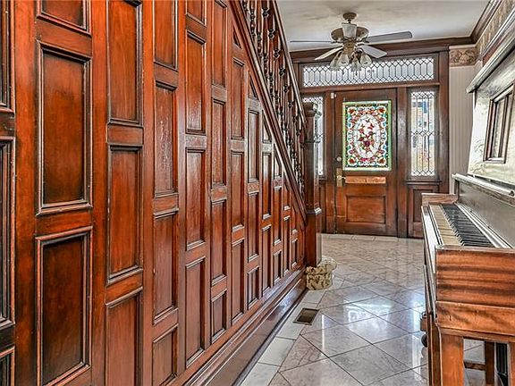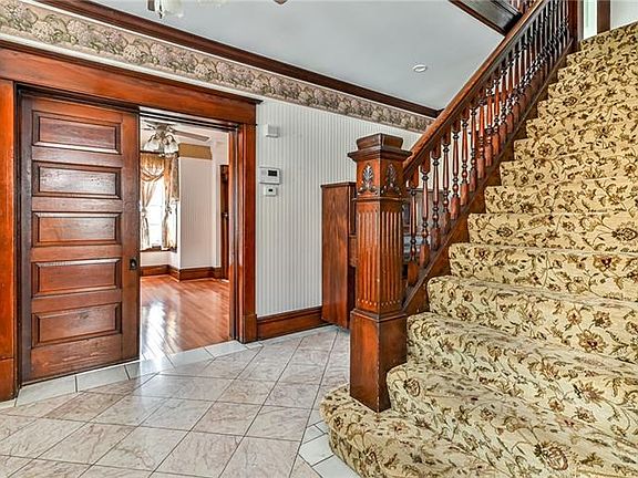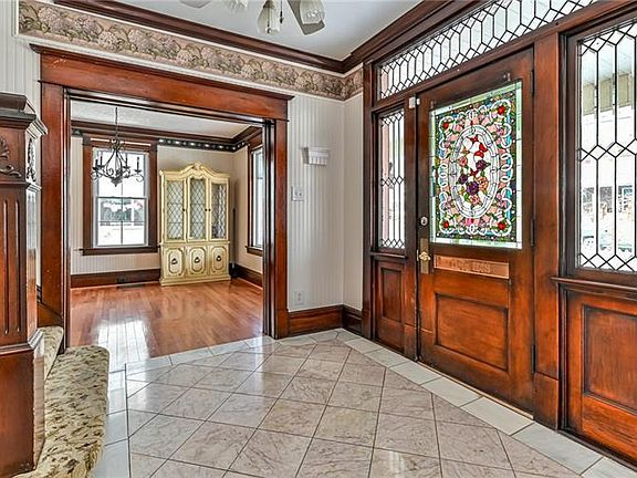 Welcome home to this jaw dropping 5 BR, 2.5 Bath Victorian boasting beautiful woodwork, large windows, pocket doors, stained glass and so much more! This must see has so much original charm mixed with tasteful updates. The large front porch invites you into the huge tile entranceway framed in original dark stained woodwork and a beautiful staircase. The first floor has a 26x11 living room, a large dining room and charming kitchen at the back of the house that overlooks the spacious back porch, back yard with a pool, and a pavilion. There are 4 large BRs and a full bath on the second floor as well as a HUGE master bedroom and HUGE full bath on the 3rd level. You'll find this house has been spotlessly cleaned, beautifully painted and has new flooring in all 5 bedrooms. There's a 3 stall oversized detached garage for off street parking & workshop space. The back yard is fully fenced with lots of shrubs and flowers in the spring. Make an appointment today to come see this beautiful home!
