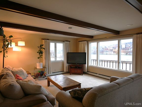 This 3 bedroom, 2 1/2 bathroom residence in the City of Houghton offers a picturesque view of the Portage Waterway and a thoughtfully designed layout. The split-entry home features spacious living areas on both levels. The main level includes an open-plan living and dining room accented with beamed ceilings and scenic water views, a well-appointed kitchen, a primary bedroom suite with a recently updated tiled shower in the en-suite bathroom, two additional bedrooms (one with a fireplace and direct access to the backyard), and a full bathroom with laundry facilities. The lower level includes a generous family room with fireplace, a workshop/storage area, a half bathroom, a utility room, and direct access to a drive-under heated garage with additional storage space. The home was thoughtfully designed for functionality and enjoyment, including double-pane windows and sliders with a third pane on the north-facing side to reduce traffic noise for enhanced comfort. Situated close to downtown Houghton, schools, and convenient access to the tunnel under M26—leading to Kestner Waterfront Park (featuring Chutes and Ladders, trail access, and beach access) and this home also benefits from proximity to West Houghton Park just a few blocks away. Recent enhancements include fruit trees, tiered garden beds, and a selection of perennials, including rose bushes. ----------- NOTICE: Information is believed accurate but not guaranteed. Buyers must inspect & verify all property details. Buyers accept all risks of inaccuracies, including but not limited to, acreage, lot size/location, square footage, & utility availability/costs. Real estate taxes will be reassessed & may change significantly after sale; do not assume your tax bills will match the seller’s. Taxes are not zero. GIS, apps and plat book pages/maps are not surveys. Audio/video recording may occur on the property; entry implies consent to recording. Buyer pre-approval or proof of funds documentation to be provided upon request. ------ OFFERS: Please allow 72 hours for a response. Seller may set or change offer deadlines at any time with or without notice.