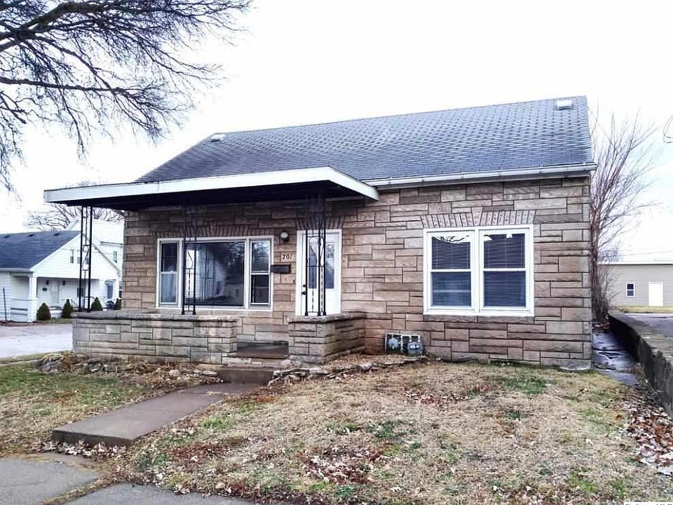Updated & remodeled home on corner lot. Ideal for owner-occupied or income property. Freshly painted interior & newer floor coverings. Newer interior doors & trim with crown molding. Newer light fixtures & ceiling fans. Insulated replacement windows throughout except front picture window. Updated kitchen & completely renovated bath. Newer roof covering over bath & 8x17 enclosed porch. HE furnace with C/A, serviced twice annually. 100-amp electric service. 7x16 covered porch. Fenced yard with 20x23 patio & 9x10 metal shed. Property was previously renting at $675/mo. Exterior is stone/concrete.