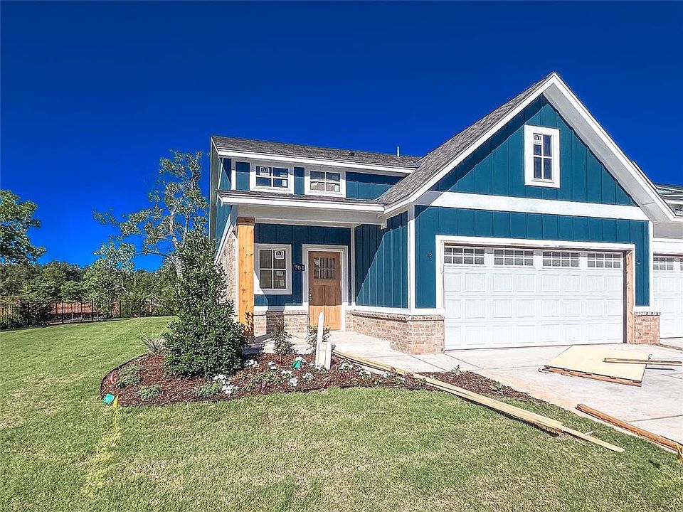 Amazing Lake Views from every room in this home! Come experience coastal-style living in Bungalow Heights! This brand new lock-and-leave lifestyle townhome community is one you won't want to miss out on. Bungalow Heights is a coastal-inspired townhome community that will be gated with a clubhouse, fitness center, resort pool, outdoor entertaining spaces, and a lake with walking trails. This home is in our Newport floor plan and has a striking blue exterior with fun dill green front door. Our Newport plan features three bedrooms, two full bathrooms, a pocket office, and an entertaining kitchen with a built-in dinette that overlooks the living room. Go ahead and sell that lawnmower of yours because in Bungalow Heights you will never have to mow your lawn again with our lock and leave lifestyle which includes yard maintenance and exterior maintenance. You are going to Love Where You Live in Bungalow Heights! Home is under construction - estimated completion Late Summer 2025.
