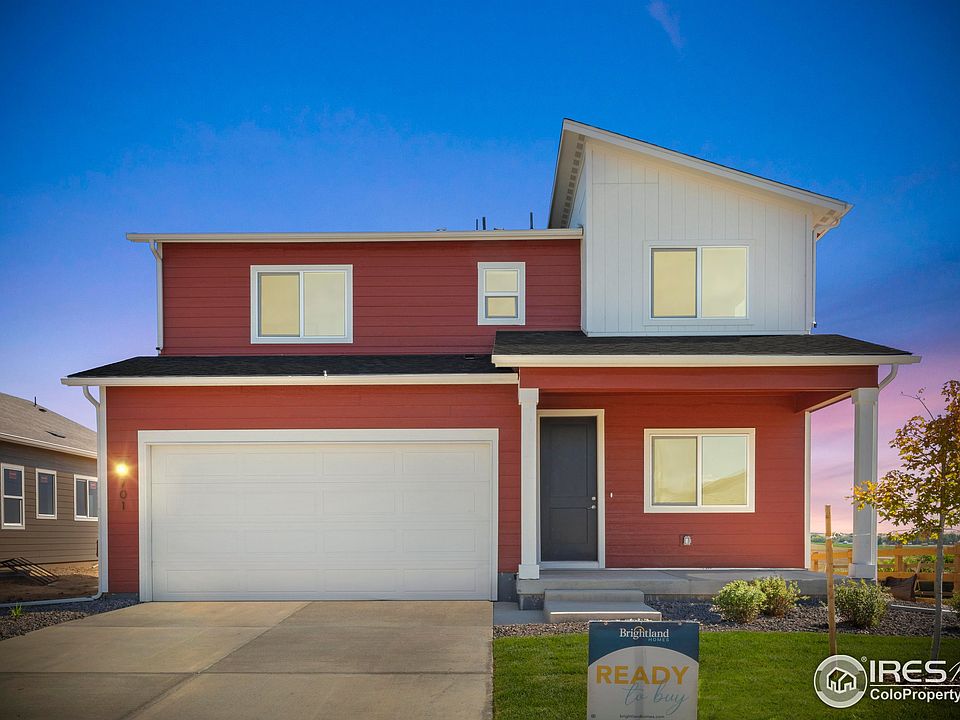 Welcome to Granary, a new sought after community in Johnstown with resort style pool, parks, and greenspace. 5 minutes to I-25, commutes are a breeze! Brand new DRB field model for sale with no back neighbor! This two story home boasts 2,015 approx. feet of space with three bedrooms, two and a half baths and two car garage. Enter through the oversized front porch and find an efficient open study as you walk in. Spacious island kitchen with upgraded Maple cabinetry and quartz countertops open to the dining and living area. Luxury Vinyl Plank flooring throughout, bordered by 5.5'' baseboards. Upstairs are three generously sized rooms, two full baths and a loft area. The primary suite has a spacious bedroom and a luxurious shower. The large backyard has space for furry friends to roam and great pastoral views! Energy saving features include double paned low E windows, 14 SEER Lennox HVAC system, tankless water heater, and 92% efficient furnace. Extra foam insulation will keep your home warm in the winter and cool in the summer! This well-built designer home is exceptional and can close now to take advantage of current rate incentives! Make your appointment today!