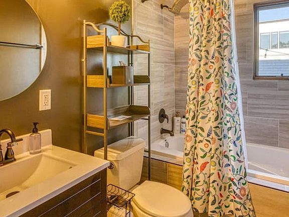 The Guesthouse at the Miller Beach Dream Retreat is nestled at the end of a quiet residential cul-de-sac, offering direct access to the park beach trail. This sandy path meanders through a slice of the Indiana Dunes National Park, leading to a sugar-sand beach with views of the Chicago Skyline and stunning sunsets. The walk to the beach is approximately 1/6 of a mile, taking about ten to twelve minutes along a mostly sandy, partially paved path that passes Historic Chanute Hill, the site of the first manned glider flight in 1896 by Octave Chanute. The Guesthouse features an open floor plan with a Great Room, a full kitchen, dining for six, a bath with a jetted tub, a private entrance, and a small deck with a Weber gas grill and cafe string lights. It includes two private Queen bedrooms and a Queen sleeper sofa in the Great Room, accommodating up to eight individuals, not including children under two years of age. Parking is available for two cars in tandem in the driveway, with free overnight overflow parking nearby. The Guesthouse is adjacent to the Dream Retreat Main House, but there are no shared spaces, ensuring privacy. The Guesthouse boasts an open floor plan with a Great Room and a full kitchen, featuring cherry cabinetry, Carrara quartz counters, and an island with a 60/40 double-bowl stainless steel sink and Grohe pull-out sprayer faucet. The kitchen is equipped with a fridge with auto-ice maker, gas range, built-in microwave and convection oven, dishwasher, and all necessary small appliances, cookware, bakeware, flatware, glassware, barware, and supplies. A Keurig coffee station with an assortment of k-cups is also provided. The Great Room features 16 ft vaulted ceilings with skylights, table seating for six, a leather sofa, and a 50-inch smart TV with digital cable, video streaming, and a Blu-ray player. Each bedroom is furnished with high thread-count linens, comforters, pillows, ceiling fans, smart TVs with digital cable and video streaming, and ample closet space, dressers, and nightstands with lamps. The bathroom includes a jetted tub, fluffy towels, bathmats, shampoo, conditioner, body wash, hand soap, toilet paper, tissues, and a hair dryer. The Guesthouse is dog-friendly, allowing up to two adult, house-trained dogs with fees of $60 for a 2-night stay, $20 per night for a 3-night stay, or $140 per week. Guests may request early check-in at 1:30 pm CST for a fee of $59 during peak season and $39 during non-peak season, and late checkout at 1 pm CST for the same fees. Due to COVID restrictions and enhanced cleaning procedures, early check-in and late checkout may not be available. Located at the edge of the Indiana Dunes National Park, the Guesthouse offers a serene retreat with easy access to nature trails and a sugar-sand beach. The nearby Lake Street Beach features a seasonal small vessel boat ramp and a paid parking lot for those who prefer to drive. The area is steeped in history, with the Historic Chanute Hill nearby, and offers breathtaking views of the Chicago Skyline and sunsets over Lake Michigan. The Guesthouse entrance is accessed by a flight of exterior stairs. Neighborhood quiet hours are strictly enforced from 9 PM to 9 AM. Parties, events, lack of decorum, and disruptive noise will not be tolerated. If neighbors are disturbed, tenants may be asked to vacate the premises with no refund. Outdoor music is not permitted after 9 PM. Small wireless Bluetooth speakers are allowed except during quiet hours. Tampering with noise monitoring devices is strictly prohibited and will result in a $350 fine. No smoking is allowed inside or within 15 feet of any open door or window, with a $1000 fine for violations. Parking is limited to two cars in the driveway, with free overnight overflow parking available nearby. The property has exterior security cameras monitoring outside areas, including the driveway and entrance stairs. Includes a built-in desk with a leather office chair, free high-speed Wi-Fi, and three smart TVs with digital cable and video streaming. A laptop computer is not included.