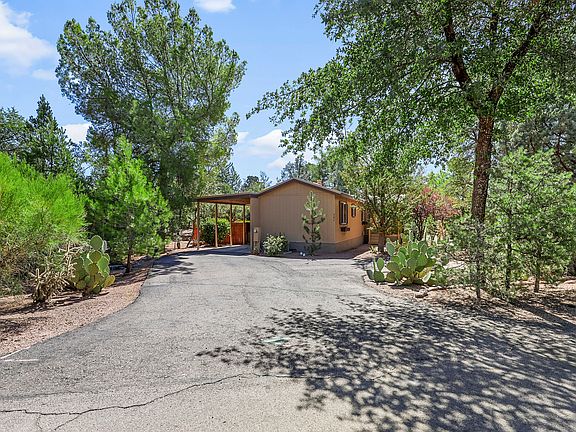 Move-in ready 1995 manufactured home in Payson. Beautiful two bedroom, 1.5BA with office or den, offers approximately 828sf of living space. Kitchen has a pantry, gas range, refrigerator, dishwasher and microwave. Central heating and cooling, washer and dryer stay with the house. Spacious back yard is fenced and has lush vegetation and tall pines. Covered front deck on west side of home. There is a workshop and a carport. Corner lot is 0.15AC. Metal roof!