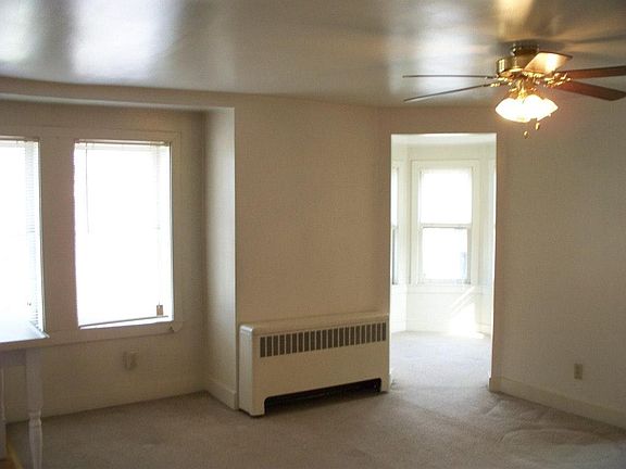 We have a very nice two bedroom, third floor apartment in center city Bethlehem, two blocks from the Moravian Historic District. Available immediately. It's a convenient location close to shopping, restaurants and Musikfest. Large with seven rooms (860 square feet), clean and bright (lots of windows). The apartment has a living room with a neat turret that could be a small dining nook or work area (14'-9" x 14'-4"); kitchen with built-in dining counter (8'-0" x 11'-0"); two bedrooms (11'-0" x 12'-0" and 8'-6" x 16'-4"); four closets and a compartmentalized bathroom has a tub/shower and toilet in one room and a double bowl lavatory in the other. Rent includes heat (from an oil-fired boiler), hot water (from an oil-fired water heater), trash removal and one off-street parking space. A coin operated washer/dryer is available in the building's basement. Pet cats are allowed, if neutered/spayed and, preferably, front de-clawed. Tenant pays for electric, cable TV, telephone and internet. Rent is $1,000 per month. A security deposit of $1,000 and a one year lease are required. Thanks for looking! Contact Dennis Connell if you have questions or to schedule a time to view. See description below.