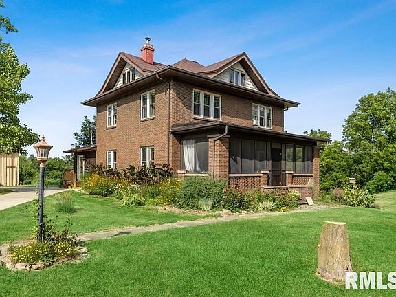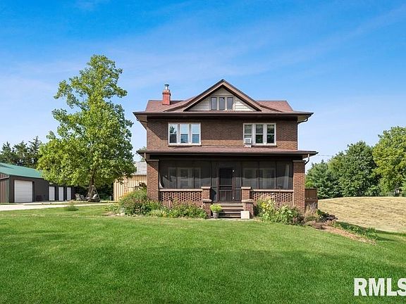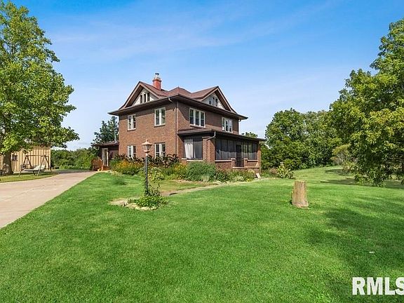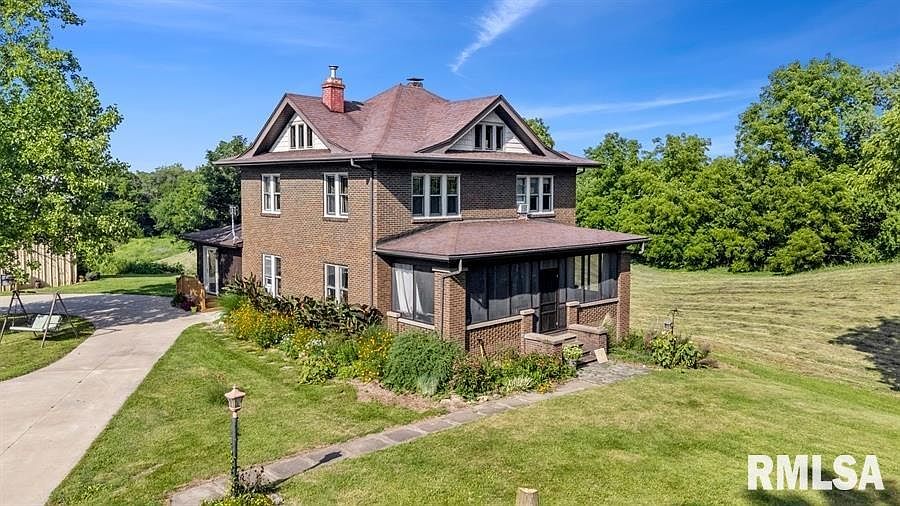 Looking to own your very own farmhouse but still conveniently live close to town and just a 30 minute drive from the Quad Cities? Look no further than this brick, Craftsman-style home, sitting on just under 18 acres of rolling hillside and re-established prairieland. Generous rooms, detailed woodwork and hardwood floors, an enormous kitchen with heated tile floors and endless cabinetry, as well as a mudroom and full bath with main floor laundry is just the start. Also on the main- a den, living room, formal dining and a peaceful screened-in porch, complete with porch swing. Upstairs you'll find 4 bedrooms, a full bath and a walk-up attic- refinish it and add plenty more living space. The 4th bedroom is lined with windows and could be used for many purposes. Outside- a 5-car garage, which also houses the owners' camper and tractors; an 1800's barn with reinforced joists above to hold hay in the loft, and plenty of land for various potential uses, including livestock and hay baling.