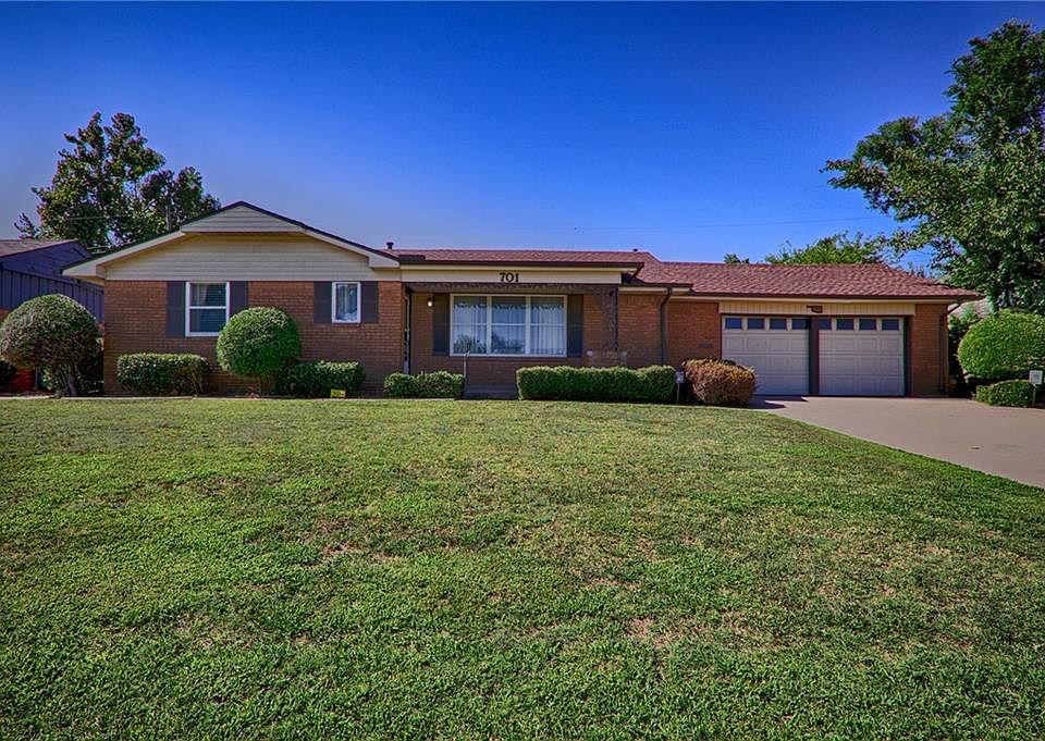 Motivated Seller!!!! You must check out the 360 Degree virtual tour and then come see this home in person. So much room and potential. New carpet throughout, new flooring in kitchen and new paint in bathroom and the bathrooms have been updated with new tile and counter top in the main bathroom. When you drive up you will first notice the beautiful landscaping and well maintained yard. This home also has been well maintained on the inside and comes with blinds throughout and even has an electric fireplace in the back bedroom. There is a big area behind the garage that has the storm shelter and can be used as a shop, storage or whatever you can imagine. You will love all the room including a large living area and two dining areas. Spend time outside on your covered front porch and your large back patio. Come see your future home.