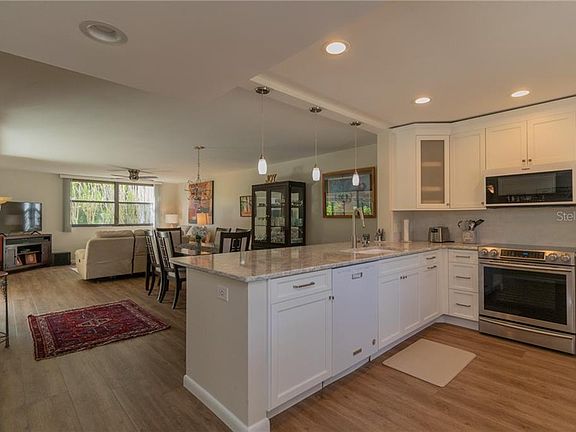 This has to be the most beautiful, totally renovated villa in Wildewood Springs! This villa truly lives like a single family home, with a wonderful flow from one room to the next. This 3 bedroom, 2 ½ bath home has the largest floor plan that the Wildewood Springs community offers. This ground floor villa is a corner unit, with no one above you, offering a great amount of privacy. The villa lives large with l869 sq.ft. under air, but a total of 2,306 sq.ft. when the very large Florida room is included. The villa was attentively and completely remodeled less than two years ago. The kitchen is just amazing. It includes custom cabinets with soft-close doors and drawers, with pull-outs in all of the base cabinets, gorgeous Cambria Quartz countertops, an induction range, counter-depth refrigerator, and finishing touches such as USB electrical ports. The floors are luxury vinyl planking through most of the home, with porcelain tile in the Florida room and bathrooms. There are also two courtyards - one in the front at the entrance of the villa, and a very lovely, high-walled private courtyard which can be viewed and accessed through both the master bedroom's, and 2nd bedroom's sliding glass doors. It is a perfect place to relax and unwind! The community of Wildewood Springs has seven pools, as well as tennis courts. Luck for the new owner, one of these seven pools is located very near, just steps away from the back door of the villa. The landscaping in Wildewood Springs is just breathtaking, and it is a joy to behold and stroll through. A great special feature of this lushly landscaped community is that it has been deemed an official wildlife and bird sanctuary by the Florida Audubon Society. It is also pet-friendly, allowing up to two dogs under 25 lbs. each. You must own a unit for two years before you can rent it out. This Villa is located so close to the beach, only 6.9 miles away. Come and see this spectacular villa today, and you could have your own piece of paradise!