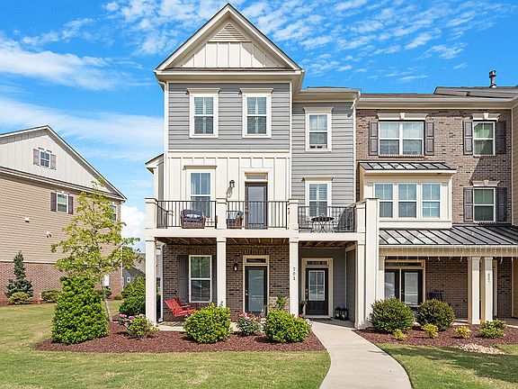 This beautiful former MODEL townhome has all the upgrades! Quiet and peaceful yet an easy commute. It is close to everything downtown Holly Springs has to offer. This home has that WOW factor and is light, bright and airy. Meticulously maintained 3 bed 4 bath END UNIT home features a flex room that could be a home office or a gym space, w/ full bath on first floor. They pulled out all the stops in the modern gourmet kitchen w/high end appliances and a separate dining room. Enjoy outdoor living, swinging on the front porch or enjoying views from one of two decks. Neighborhood amenities include pool, playground, and dog park. Huge walk up attic storage. Don't pass up the chance to make this home yours.
