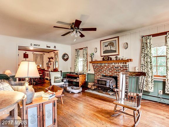 Lovely Colonial on a corner lot close to Main Street in Laurel! White picket fence! Fenced back yard. Lovely landscaping with fish pond. Wood floors, spacious bedrooms, brick fireplace with wood stove insert, gas stove in wood paneled den- perfect for fall nights! Fabulous kitchen with amazing Viking range and pot filler. Three season sunporch is heated! Updated, but retains old-fashioned charm!