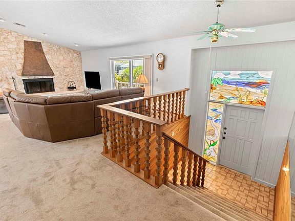 Perfectly situated in the coveted Sleepy Lagoon north Longboat Key community, you will find this hidden waterfront gem with loads of curb appeal located on a deep water canal accessing Sarasota Bay. Upon entering you are greeted with 10' ceilings in the main living area with a wood burning fireplace and access to the front terrace. Centrally located the dining and living areas open to the completely remodeled kitchen showcasing a serene canal view, porcelain tile flooring, granite countertops, an oversized breakfast bar with access to the spacious screened rear terrace replaced in 2018. The master bedroom offers two walk-in closets, access to the terrace and a spacious master bath with dual vanities and plenty of counter space. The guest bedroom is ensuite and overlooks the lushly landscaped circular drive. Relax into the Longboat Key lifestyle by the heated pool which was recently rescreened. Ideal for boater's, the newer dock is outfitted with water, electric and a lift to accommodate up to a 15,000lb boat. Sleepy Lagoon offers nearby beach access and an ideal location close to fine dining and shopping. Other recent home improvements include all new blinds upstairs, rain spouting, hurricane rated garage door, updated landscaping, railings and chimney, a new fence and a total roof replacement in 2020. Additionally there are impressive air conditioned storage areas on the lower level adjacent to the 2 car garage.