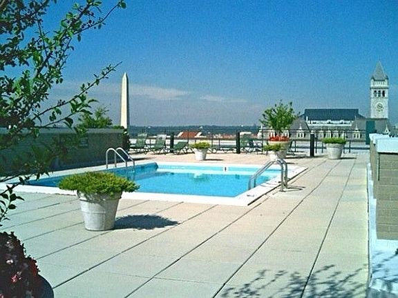 Prestigious Penn Quarter Market Square East Condo. Best location in DC! Steps to Metro, Capitol, restaurants, shops, theater, museums, Union Station. En suite washer/dryer, French doors to balcony overlooking courtyard. Security lobby, gym, roof top pool, terrace with fantastic city panoramas. Tenant pays utilities. No smoking.