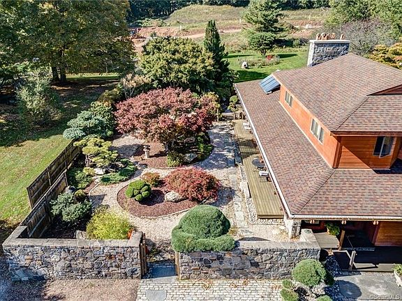 Bathed with natural light and designed to capture the outdoors, gardens and natural surroundings this home creates a relaxing peaceful retreat to call home. This home has many unique features: Solar features passive and active system with 12" of radiant concrete and Shoji Screens, Tranquil Japanese tea garden with waterfall and Koi Pond and yard contains unusual stones specifically placed to achieve balance. Masterbedroom bedroom on first floor with bamboo floors and large European style bathroom, Second level could be in-law or multi-generation use with kitchenette with slider to deck. Privately set back on 3.23 acres, 2 story barn on back of property for hobbyist.
