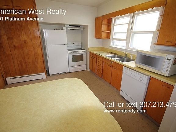SCHEDULE A SHOWING ONLINE AT: showmojo.com/lh/0b4e92c029 This home is centrally located, literally blocks from the hospital and downtown Cody. There is a large driveway leading to a two-car garage. The back yard is fully fenced and includes a large deck and newer garden shed. The kitchen includes a newer fridge, stove, and dishwasher. There is plenty of storage under the breakfast island and the built-in hutch. The dining room has another storage closet, hardwood floor, ceiling fan, and a sliding glass door that leads to the back deck. There is one bedroom on the main floor and a full bath. The upstairs includes two bedrooms, both with large closets. The main bedroom is huge! There is another full bath and a wide hallway that makes moving in a little easier. Hot water baseboard heat. A single pet is negotiable for additional rent and/or deposit. No smokers. Contact American West Realty for more information or to apply. Air Conditioning Swamp Cooler Cable Ready Ceiling Fan Deck / Porch Fencing Fully Fenced Flooring Hardwood Garage Heat Baseboard Hot Water Kitchen Dishwasher Kitchen Refrigerator Kitchen Stove / Oven Sprinklers Manual Storage Shed Utility Black Hills Energy Utility City Of Cody (Water, Electric, Sewer, Trash) Views Washer/Dryer In Unit
