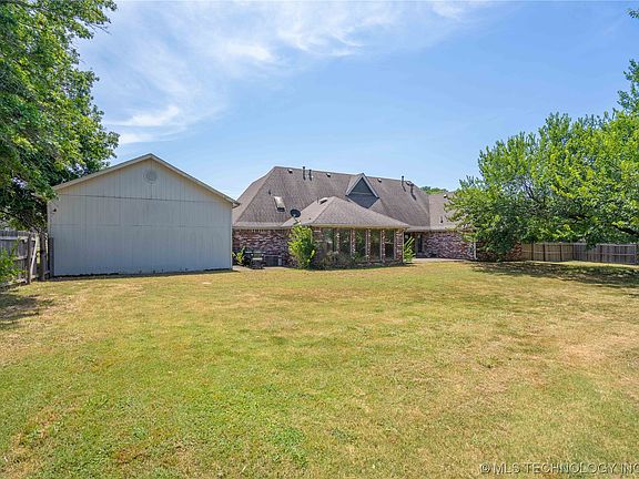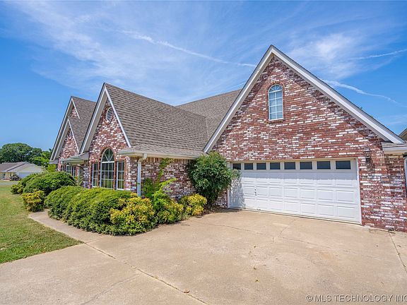 Beautiful brick home on large corner lot boasts four bedrooms and three full bathrooms. Located just minutes from the Lower Illinois River as well as Lake Tenkiller. A Sportsmans dream! Large open style kitchen and dining area opens to the spacious patio and privacy fenced back yard. Formal dining room could also be used as an office. Mother in law suite off the kitchen area has its own large bedroom, bathroom and walk in closet. Tray ceilings and crown molding in multiple rooms. The primary bathroom has double vanity sinks and shower as well as tub, and his and her walk in closets. Additional detached garage is 24 X 40 with two Ten foot insulated overhead doors with openers. Detached garage needs a little work, as does house. This is a quality build on a corner lot within walking distance to the city park which boasts tennis court, splash pad, basketball court and playground equipment. Small town living at its finest!