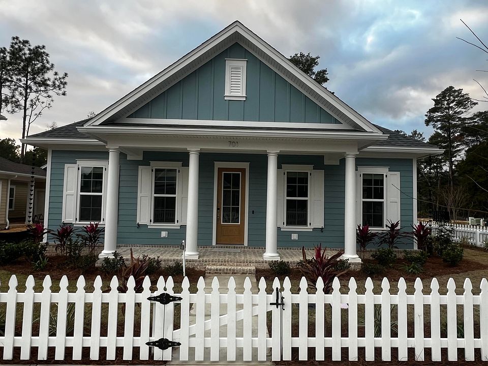 This house, the Juniper Plan, will feature 4 bedrooms 3 baths. When you enter the home, you are greeted with an open floor plan with the primary bed/bath, two additional rooms and a full bathroom downstairs, and a 4th bedroom/bonus room and full bath upstairs. The kitchen's white, shaker cabinets, quartz countertops, white front-apron sink, and stainless appliances give it a clean, modern feel. This home also comes already equipped with a Ring Door Bell.