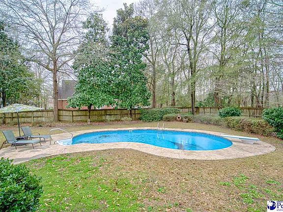 Great West Florence location! Located at the end of a cul-de-sac and adjacent to the Florence Rail Trail which leads to McLeod Health & Fitness Center. Other nearby fitness activities include Ebenezer Tennis courts with Pro Shop and ESAB Soccer Fields. Convenient to shopping and dining at Magnolia Mall, events at the Florence Center, and Florence Veteran's Park. Easy access to both I-95 and I-20. Home office is currently served with At&T Gigabit Fiber Internet and Spectrum cable wired throughout. Many great additions: Built-in bookcases in den & office, crown molding throughout first floor, chair rails and raised panels. Gas log fireplace, 50-gal water heater, ceiling fans in all bedrooms, den, office,, sunroom, & bonus. Intercom system with music includes deck and pool area. Dimmers on many lights.