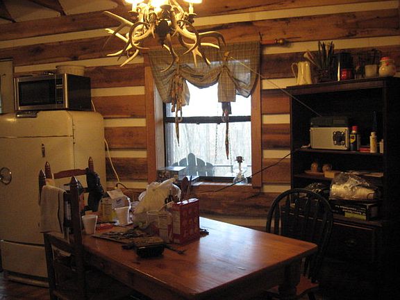 Peace and Quiet, wildlife is abundant. Perfect get away in the woods. Enough furniture will be left to occupy the cabin immediately. Very comfortable, large wood burning stove keeps the home heated in the winter time. Stove and refrigerator, storage building, dining table and chairs. chests and more will be left. Covered front porch, enough room attached to the cabin for a 4 wheeler. Hunters would love this cabin.