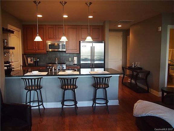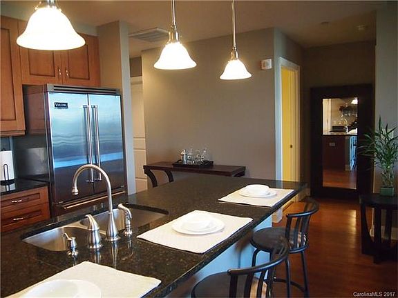 Walk down the hall to the rooftop pool, spa, fireplace & kitchen, all located on the same floor of this fabulous unit! Sophisticated condo boasts new beautiful engineered hardwood floors, new carpet & fresh paint throughout in 2017! Tiled baths w/ granite topped vanities, designer kitchen w/granite & stainless steel Viking appliances & 3 flat screen TVs! The Master suite is large enough for a King bed & two end tables & features custom black-out draperies.The guest room features an attached pull down Murphy bed! Huge 200+ sq. ft. balcony w/teak tile flooring offers exciting skyline views great for entertaining! The secured building offers an opulent lobby, concierge desk, fitness room & the ROCO lounge w/spacious gathering area & kitchen. Deeded parking space in the secured garage is conveniently located just inside the garage on the main entry level! Walk to Dilworth shops, Latta Park, Uptown, fine dining on East Blvd. & The Metropolitan, The Dilworth Grill & The Packhouse Restaurant.