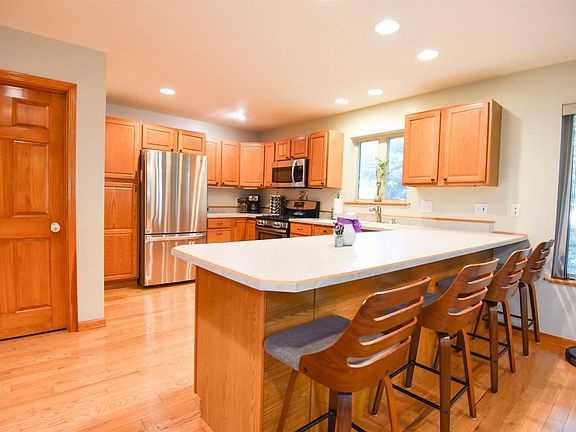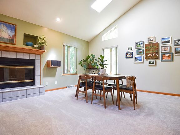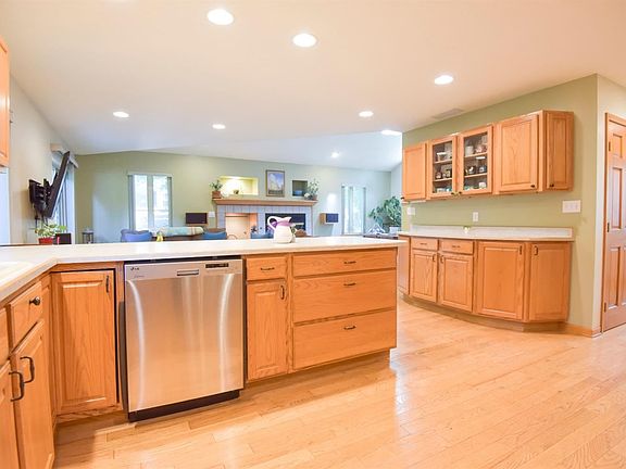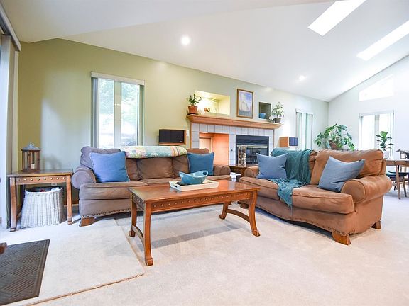 Enjoy lush, park-like views from this well-maintained, quality 2-story home of 2 x 6 construction. In addition to eye-catching, built-in design details, this handsome 3-bedroom, 2 1/2-bath home features vaulted ceilings, open concept, recessed lighting throughout and a wood-burning fireplace. The great room, formal dining, breakfast area and kitchen form main-floor open space ideal for entertaining or gatherings. Easy dining/great-room access to a private 20 x 16 deck with hot tub, natural gas hook-up and woodland landscape views. Hardwood floors flow from the foyer into the kitchen. Stainless steel appliances and ample cabinets complement a larger countertop and peninsula/island with seating. Primary suite has vaulted ceiling and a private loft/retreat. Primary bath has a double-bowl vanity and walk-in closet. House sound system features speakers in the living room, master suite, garage and deck. Extra storage in outdoor shed and crawl space with cement floor accessible from garage.