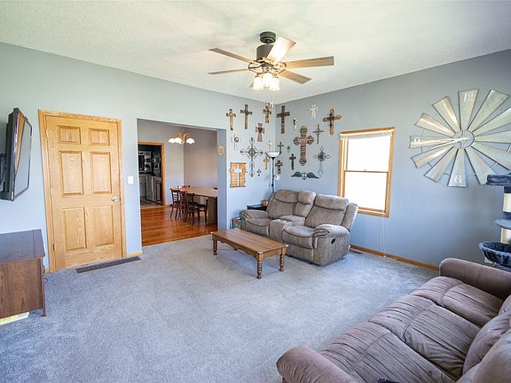 This 4-bedroom, 3-bath home on a .42 acre lot offers a walkout basement, 2-car garage, and spacious living. Recent updates include a new roof, new siding with added insulation, new patio, and new carpet to be installed in the basement before closing. The garage will also be resided to match the house prior to closing. Inside features include hardwood floors, natural light, a thoughtful kitchen with pantry, main floor laundry, and generously sized bedrooms. One of the full bathrooms has a jetted tub. Solar panels on the garage (connected to the house) come with approx. 24 years of warranty. Home offers 1,176 sq ft on the main level, 1,176 finished sq ft in the basement, plus 450 finished sq ft upstairs. Storage throughout and a large yard to enjoy. Schedule your showing today!