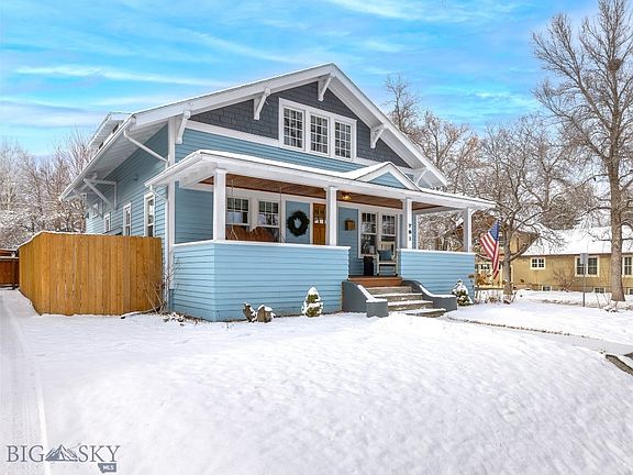 Nestled in the tree-lined boulevards between MSU campus and Downtown lies this very happy and historic, remodeled, 5B|4B, Craftsman Bungalow home. Bright and cheery at every turn! Special spaces throughout the home will delight with their antique charm. Original hardwood floors have just been refinished to bring out their beautiful details. All brand new windows on the main level and brand new roof. A delightful den/office in the front offers a great space to work or read with built-in book shelves and natural light streaming in through picture windows. The show-stopping kitchen with exposed beams will be your sanctuary as you cook, visit with friends & family, and enjoy the cozy fireplace. 4 person seating at the 10ft island, large gas cooktop, dual wall ovens and plenty of storage and counter space will ensure easy entertaining! The dining room can fit a crowd, but also suits romantic nights in. Upstairs, the large primary suite has a bank of windows, custom window coverings, original hardwood floors and walk-in closet. The cheery bathroom has a soaking tub, steam shower and dual vanities. Upstairs, 2 additional guest bedrooms with wood floors, vaulted ceilings, and a full, Jack & Jill bathroom. Downstairs has brand new carpet and houses a spacious family room, 2 guest bedrooms, full bathroom, office with built-in desk, and laundry room. You'll enjoy a large mudroom off the kitchen with sliding barn door, back patio for those summer BBQ's, raised garden beds, and alley access to the 2-car detached garage. Fully fenced back yard for privacy. R2 zoning for potential expansion of an ADU. Come see this Downtown Charmer on a corner lot with loads of character and appeal. Two blocks to MSU, Two Blocks to neighborhood park, Five Blocks to Downtown Main St, and just few blocks to the Mountains to Main St trail system. This is a MUST SEE!