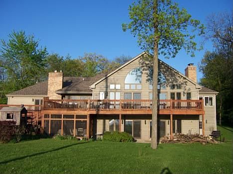 Absolutely Stunning 7500+ Sq. Ft. Chain O'Lakes Waterfront. 150' of Riverfront North of the Dam, on the widest, quietest part of the Fox River. Enormous Great Rm W/Soaring Vaulted Ceilings. Master Suite has Huge Master Bath, Fireplace & French doors leading to Balcony/ Deck. Beautiful Hardwd Flrs, 6 Panel Doors, Oak Trim, 4 Fireplaces & 2 Kitchens. Ideal for a possible In Law Arrangement In Walk Out. Lower level Entertainment Room has huge Bar Area, Pool Table Room and Hot Tub Room. The pictures don't do it justice. GEORGOUS MUST SEE!