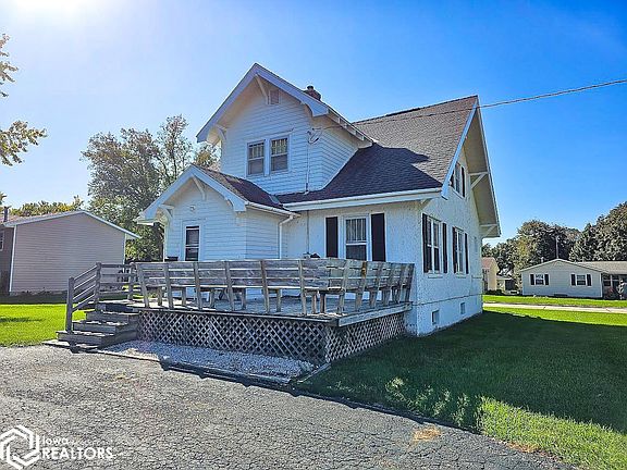 Welcome to this charming & historic home, constructed in 1920. Step onto the expansive deck and into the entry, leading into the kitchen, complete w/ appliances. Adjacent to the kitchen, the spacious living and dining area awaits, promising an ideal ambiance for unforgettable gatherings. A main level bath has been seamlessly incorporated into the home, complete w/a walk-in shower, built-ins, and a stackable washer/dryer set (2nd set in basement). Step through the beautiful French doors and discover a delightful enclosed porch, offering a tranquil spot to savor a morning coffee or indulge in a good book. Ascend to the 2nd floor and be greeted by a large landing, leading to three sizeable bedrooms. Completing this level is another bathroom with a tub for relaxing. The stucco exterior of this property could be easily painted. There is a detached 2 stall garage w/an 18x20 addition, providing an ideal space for pursuing any of your hobbies. Let's get you into a new place to call home!